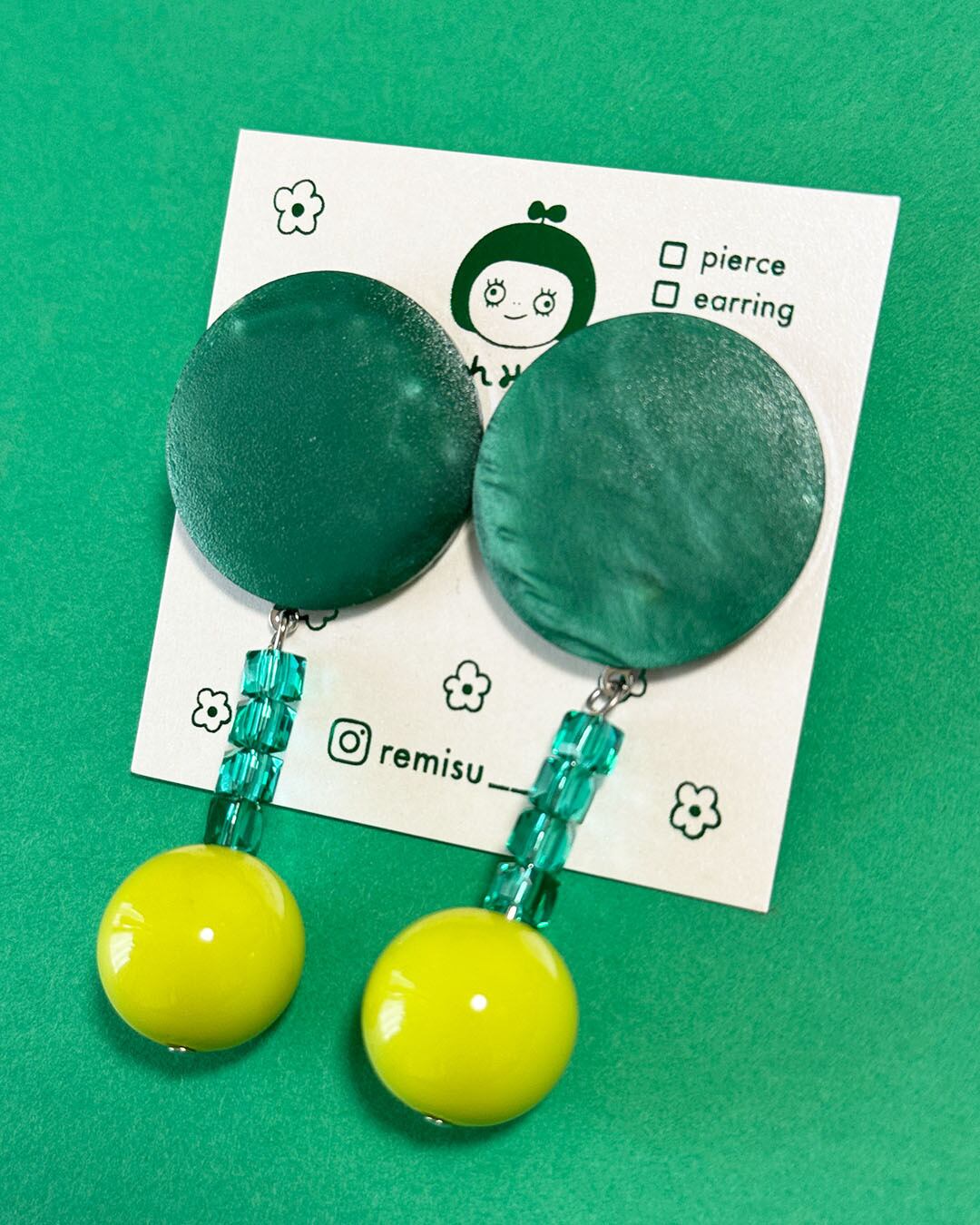 緑色でまとめた耳飾りです。