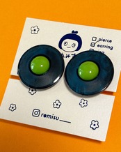 深緑×黄緑の組み合わせが目を引く、まんまるデザインの耳飾りです。