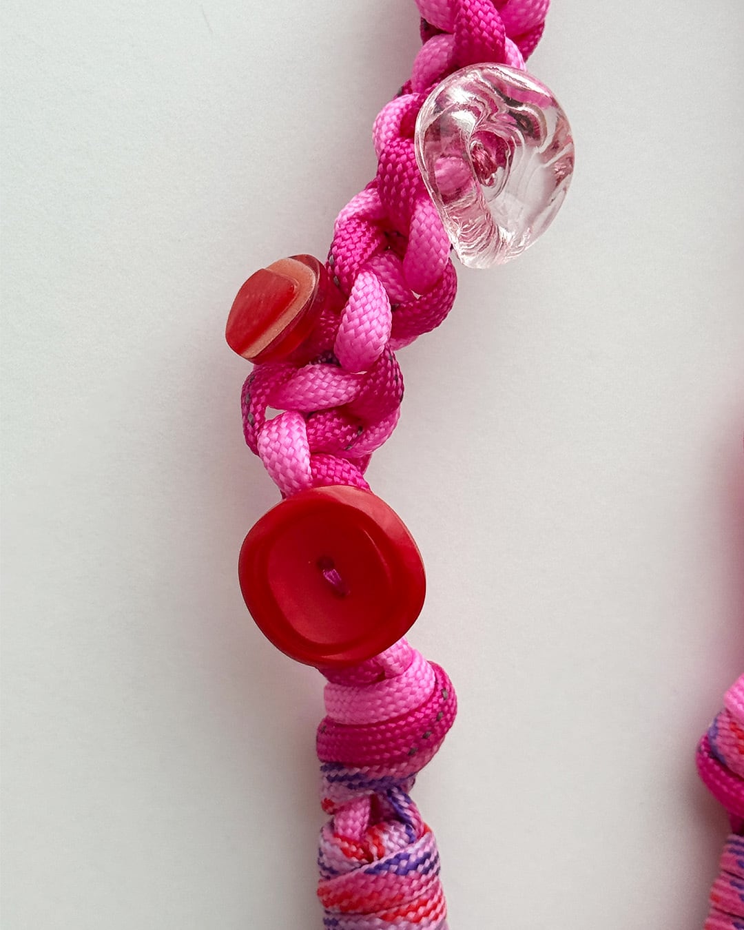 カラフルで存在感のあるパラコード部分はオオツカさんが手がけ、ボタン飾りはれみすが担当。お互いの「好き」と「こだわり」をぎゅっと詰め込んだ、共同制作ならではの一点です。