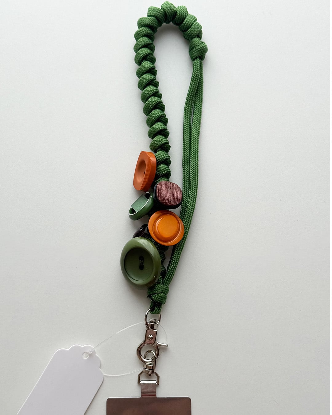カラフルで存在感のあるパラコード部分はオオツカさんが手がけ、ボタン飾りはれみすが担当。お互いの「好き」と「こだわり」をぎゅっと詰め込んだ、共同制作ならではの一点です。