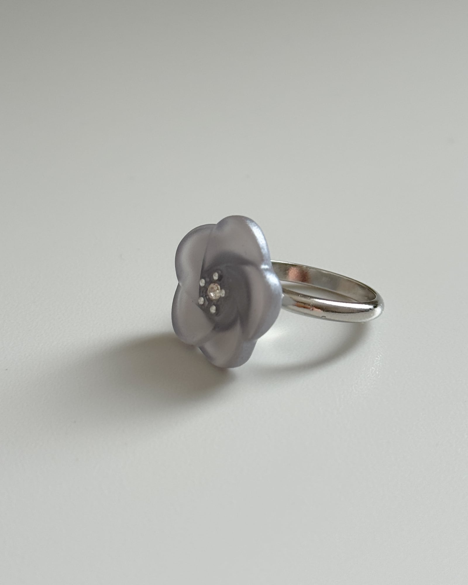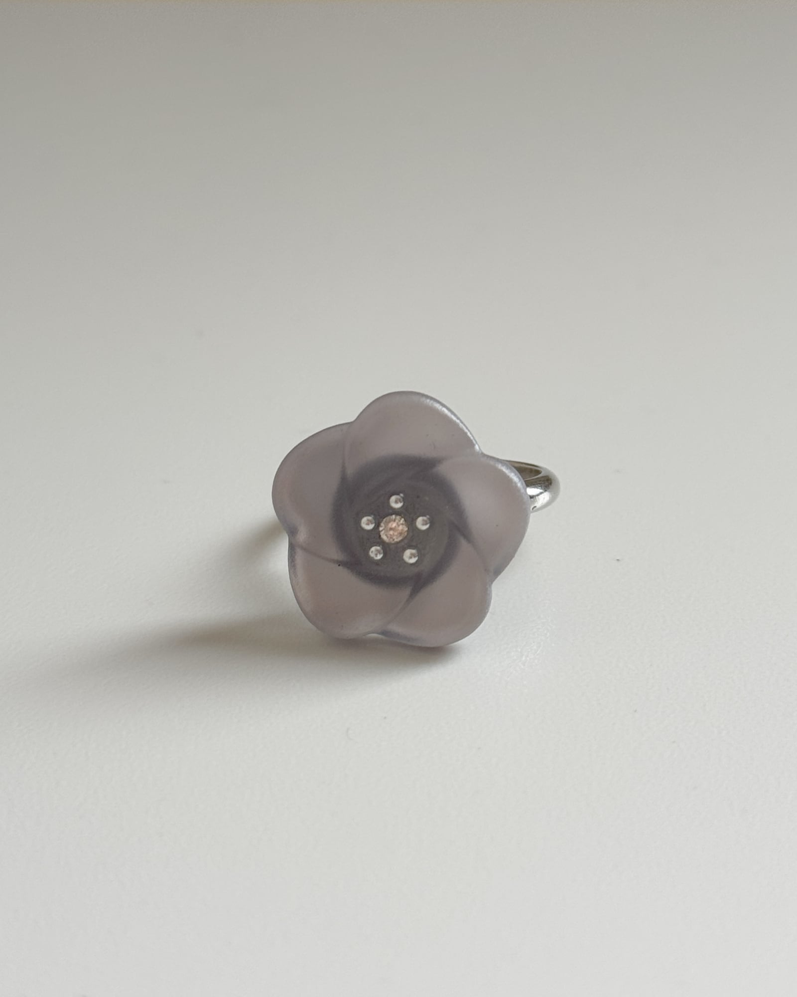 グレーのお花の形をしたボタンを使ったゆびわです。