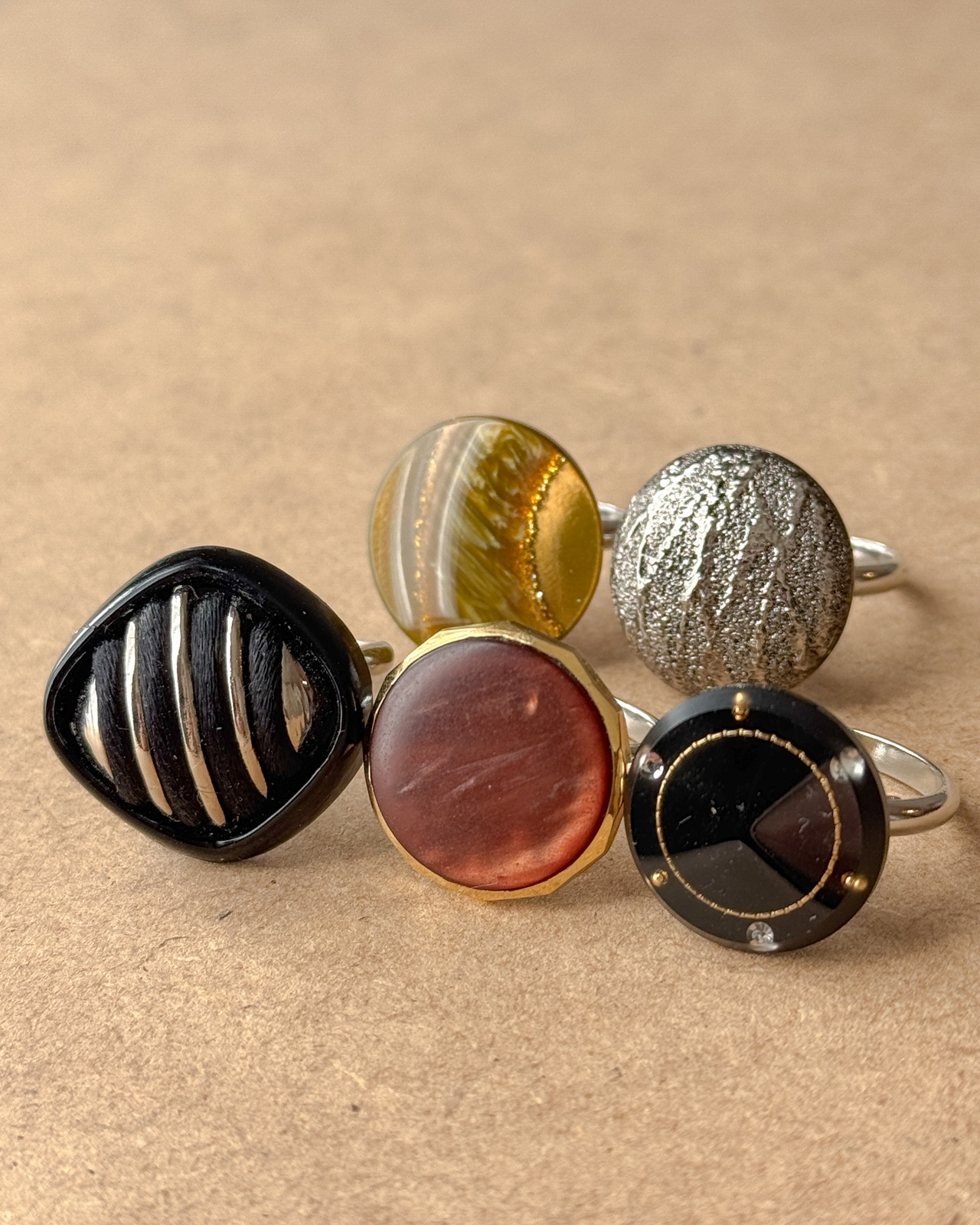 どこか懐かしく、洗練された「大人な表情」のボタンを集めたセット。