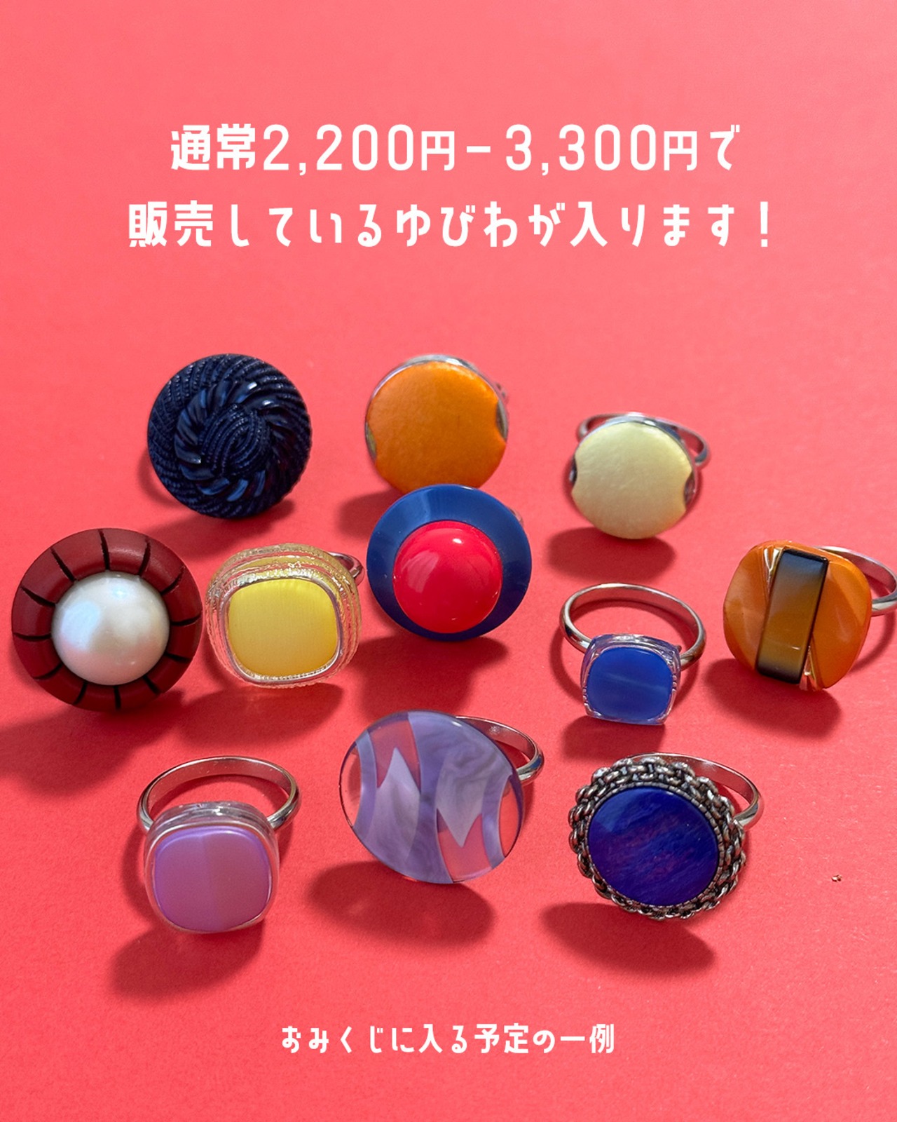 通常2,200円から3,300円で販売しているのゆびわをランダムで1つお届けします。